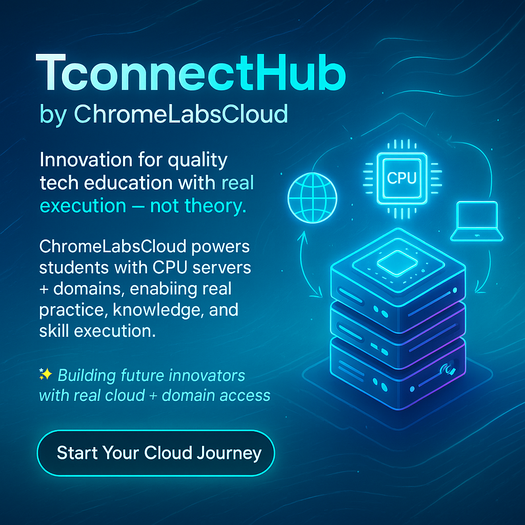 TconnectHub is an innovation initiative by ChromeLabsCloud, created to deliver quality tech education with real execution, not just theory.